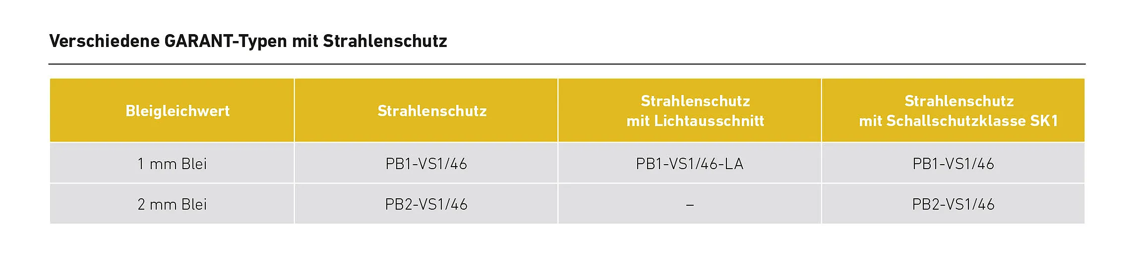 Depending on the thickness of the lead insert, the radiation is attenuated by a defined amount (lead equivalent value or attenuation level). GARANT produces radiation protection doors with lead thicknesses of 1 mm (PB1) or 2 mm (PB2). With a lead equivalent value of 2 mm, a special radiation protection lock with an offset handle follower is used on the opening and closing side so that the passage of radiation is weakened accordingly.