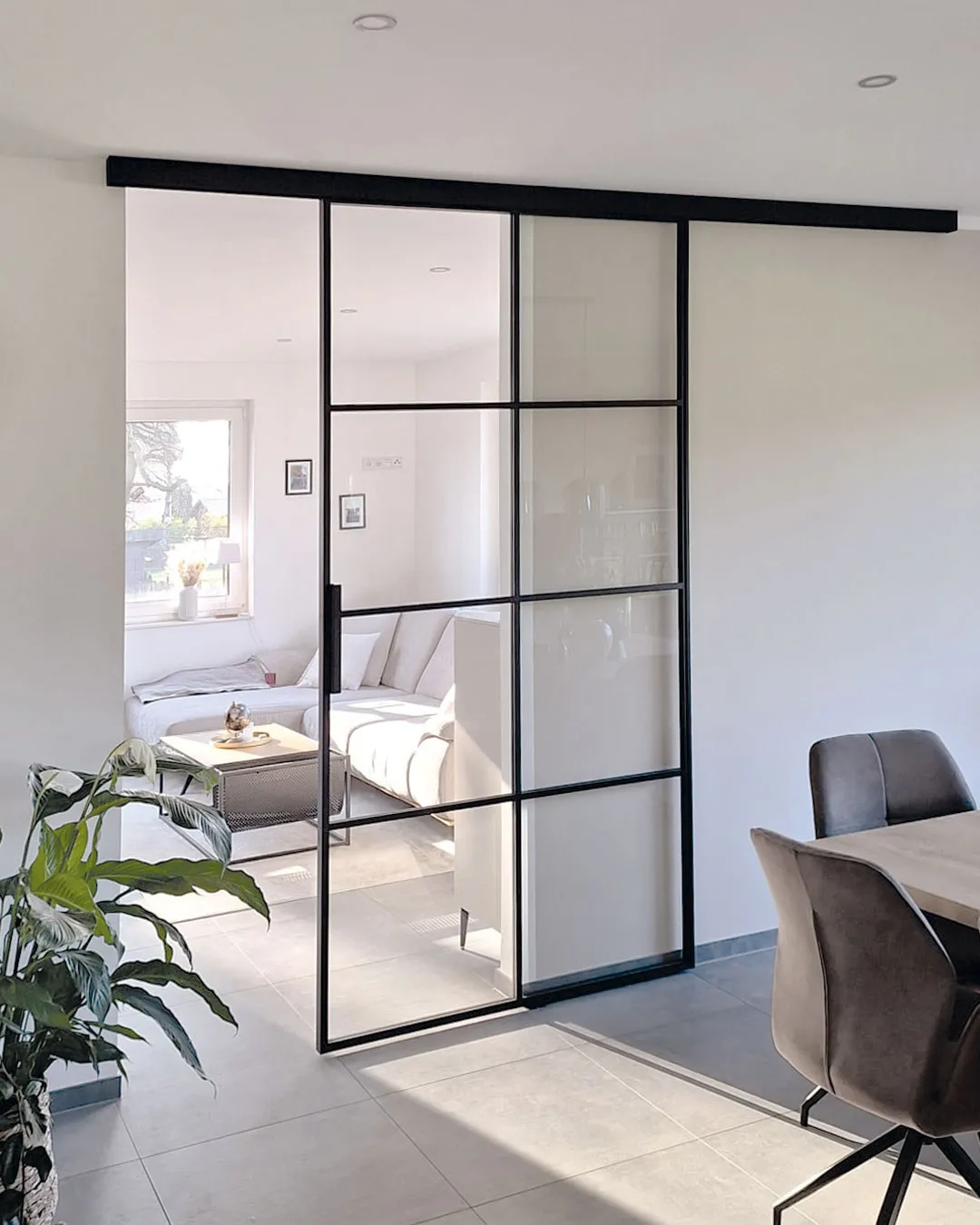 Lors de la planification d'une porte coulissante en verre, la situation de la pièce est déterminante : il doit y avoir suffisamment de place sur les côtés pour que le panneau de porte puisse s'ouvrir complètement. Le choix du type de verre est tout aussi important - du verre transparent au verre de sécurité ESG ou VSG en passant par le verre satiné.